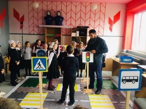 Это мероприятие прошло в новом оборудованном кабинете Центр «Точка роста». Отряд ЮИД вместе с руководителем подготовили материалы по изучению правил дорожного движения. Рассмотрели разные дорожные ситуации, в которые могут попасть дети. Дети смогли познакомиться с дорожными знаками и научились их различать по предназначению. Мобильный учебный городок, позволяет наглядно показать при участии самих детей, разные ситуации и дорожные ловушки.